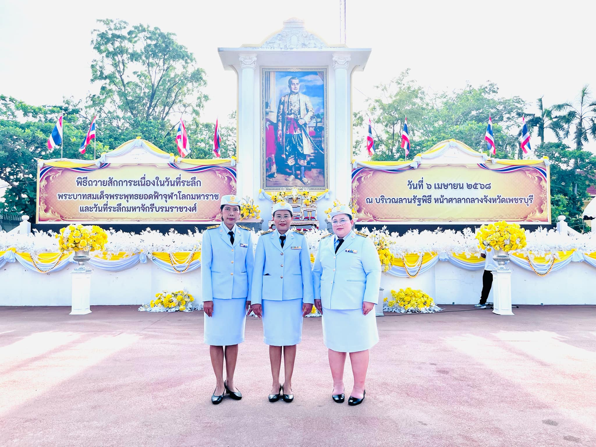 ผู้ช่วยศาสตราจารย์ ดร.เสนาะ กลิ่นงาม อธิการบดีมหาวิทยาลัยราชภัฏเพชรบุรี มอบหมายให้ผู้ช่วยศาสตราจารย์อารี น้อยสำราญ ผู้อำนวยการสถาบันวิจัยและส่งเสริมศิลปวัฒนธรรม พร้อมด้วย อาจารย์ณปภา หอมหวล รองผู้อำนวยการฯ และ นางสาวพิชชานันท์ กรีดกราย นักวิชาการวัฒนธรรมปฏิบัติการ เข้าร่วมพิธีถวายสักการะเนื่องใน “วันที่ระลึกพระบาทสมเด็จพระพุทธยอดฟ้าจุฬาโลกมหาราชและวันที่ระลึกมหาจักรีบรมราชวงศ์” ณ บริเวณลานรัฐพิธี หน้าศาลากลางจังหวัดเพชรบุรี โดยมีร้อยตำรวจโท ภพชนก ชลานุเคราะห์ ผู้ว่าราชการจังหวัดเพชรบุรี เป็นประธานในพิธี