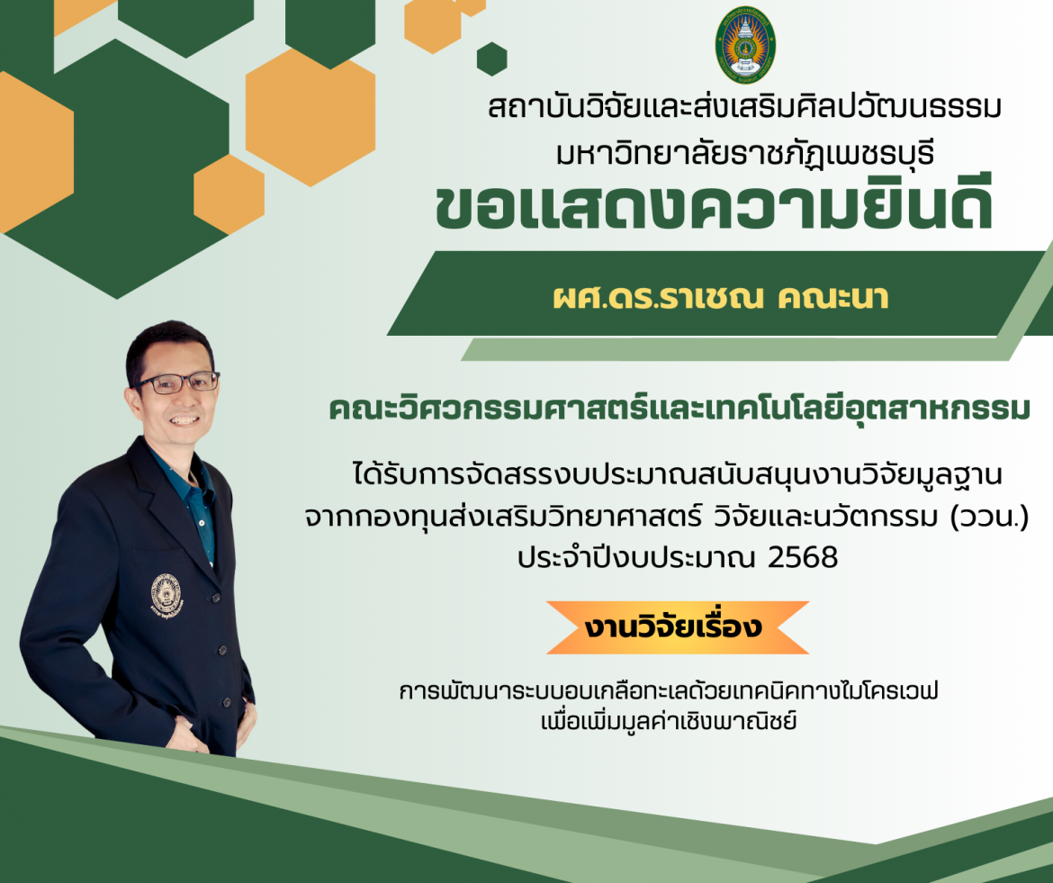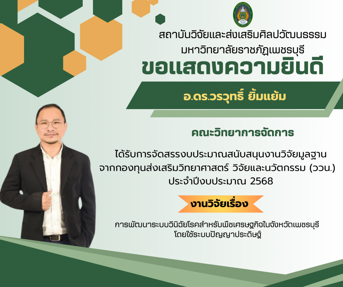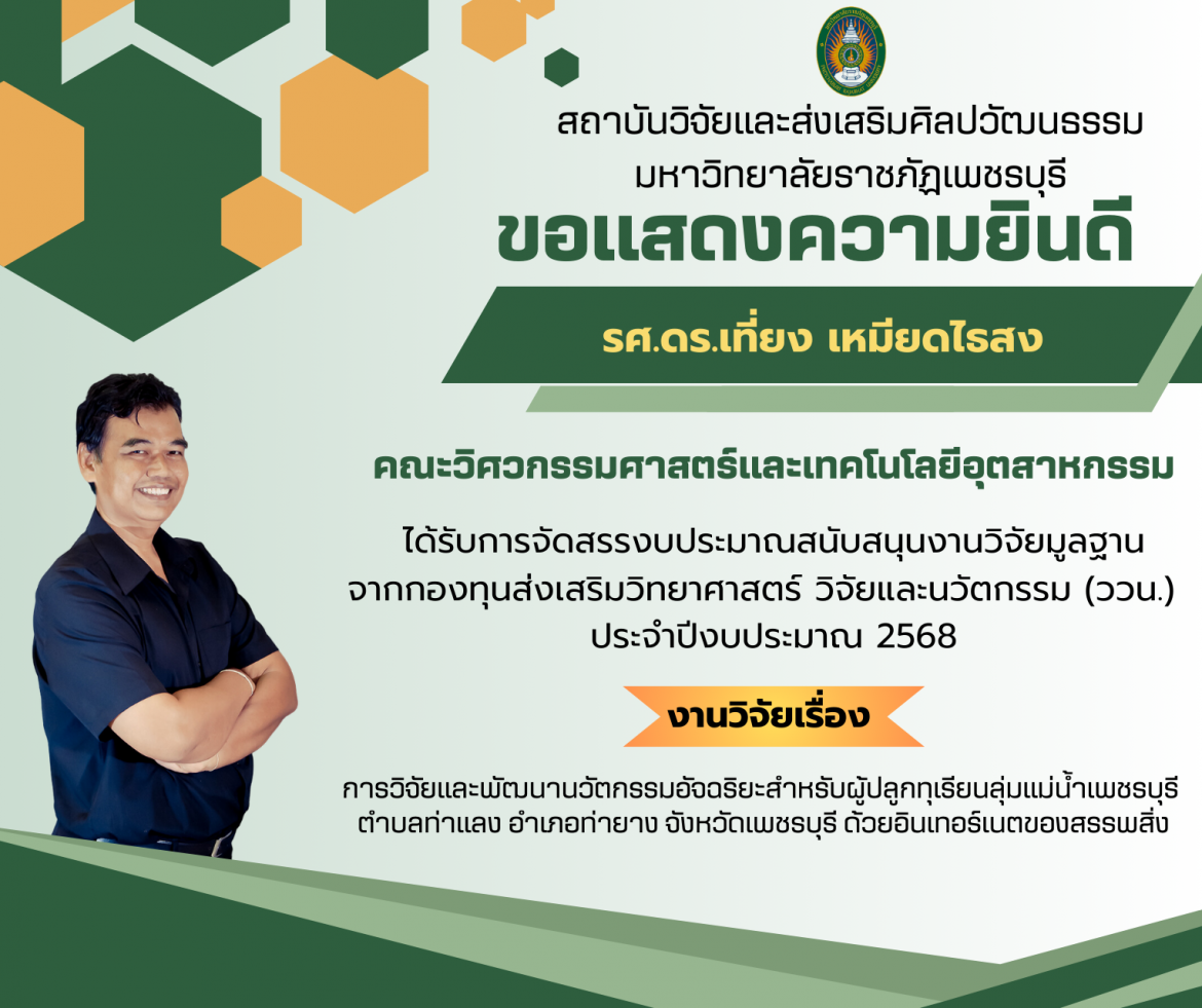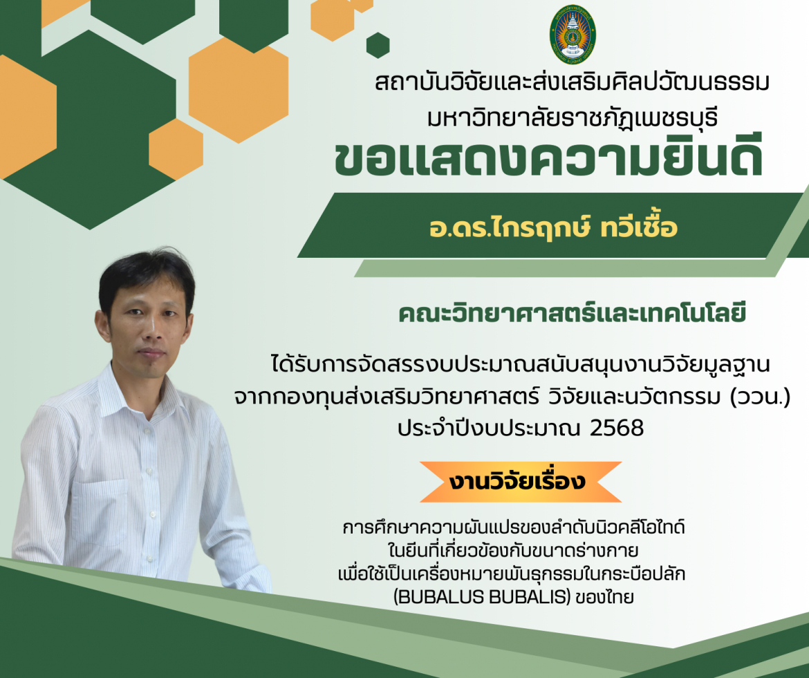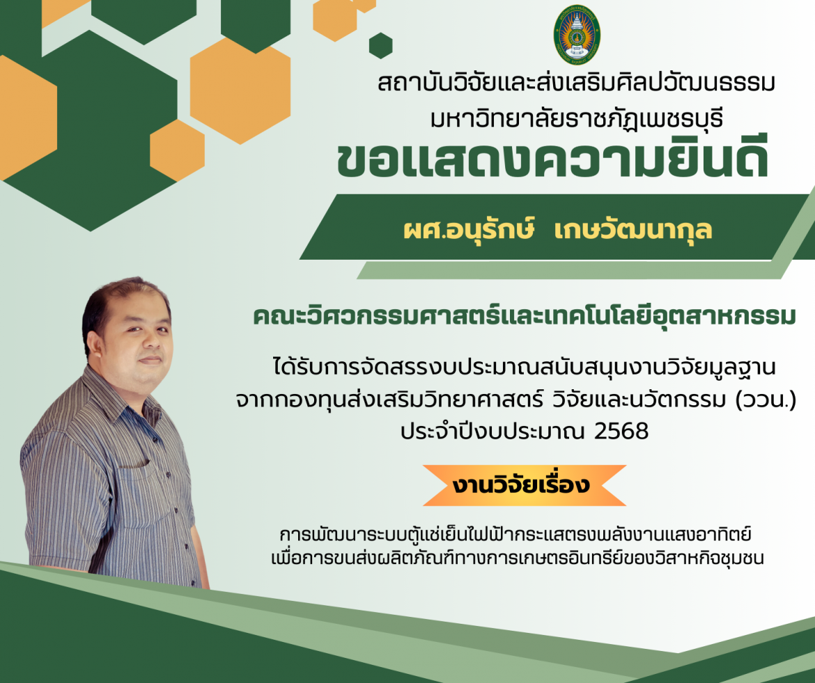 ทั้งนี้ มหาวิทยาลัยราชภัฏเพชรบุรี ได้ส่งเสริมและสนับสนุนให้นักวิจัยที่ได้รับงบประมาณทุนสนับสนุนงานมูลฐานของหน่วยงาน (Fundamental Fund: FF) เข้าร่วมนำเสนอผลการดำเนินงาน จำนวน 4 โครงการ ประกอบด้วย