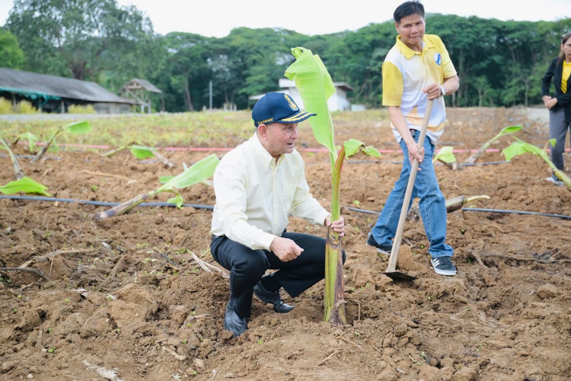 ทั้งนี้ ในปีงบประมาณ 2568 ได้ดำเนินโครงการพัฒนาคุณภาพชีวิตและแก้หนี้สินเกษตรกร โครงการอันเนื่องมาจากพระราชประสงค์หนองพลับ-กลัดหลวง ตามหลักปรัชญาเศรษฐกิจพอเพียง ด้วยการปรับปรุงพื้นที่รกร้างร่วมกับชาวบ้านในพื้นที่ จำนวน 15 ไร่ เพื่อทำการปลูกกล้วยหอมทอง จำนวน 5,000 หน่อ โดยมีสหกรณ์การเกษตรท่ายาง จำกัด เป็นผู้ควบคุมคุณภาพและเข้ามาเก็บเกี่ยวผลผลิต มีการประกันราคาอยู่ที่ผลละ 1.80 บาท และจะนำหน่อกล้วยที่แตกออกมาจากพื้นที่เดิม มาปลูกเพิ่มในพื้นที่ใหม่อีก 5 ไร่ ภายใต้แนวคิด BCG Model ส่งผลทำให้เกษตรกรมีรายได้และมีชีวิตความเป็นอยู่ที่ดีขึ้น เกิดการสร้างอาชีพ สร้างรายได้ในพื้นที่