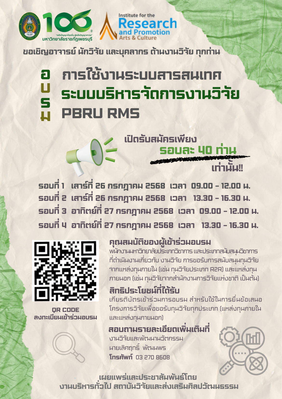สถาบันวิจัยและส่งเสริมศิลปวัฒนธรรม มหาวิทยาลัยราชภัฏเพชรบุรี ส่งเสริมการพัฒนาทักษะด้านดิจิทัลของบุคลากร