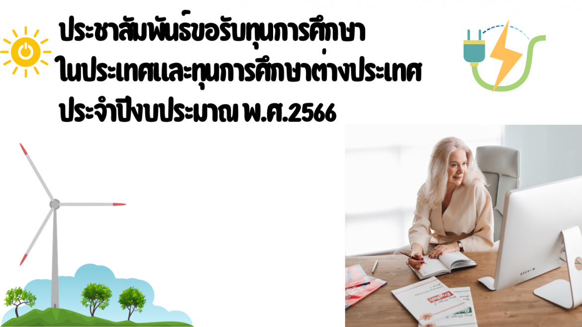 ประชาสัมพันธ์การสมัครขอรับทุนการศึกษาในประเทศและทุนการศึกษาต่างประเทศประจำปีงบประมาณ พ.ศ. 2566 เพื่อสนับสนุนทุนการศึกษาแก่บุคลากรของหน่วยงานภาครัฐ และสถาบันการศึกษาของรัฐ เข้ารับการศึกษาต่อในระดับปริญญาโท และปริญญาเอก สาขาที่เกี่ยวข้องด้านพลังงาน ในสถาบันการศึกษาในประเทศและต่างประเทศ