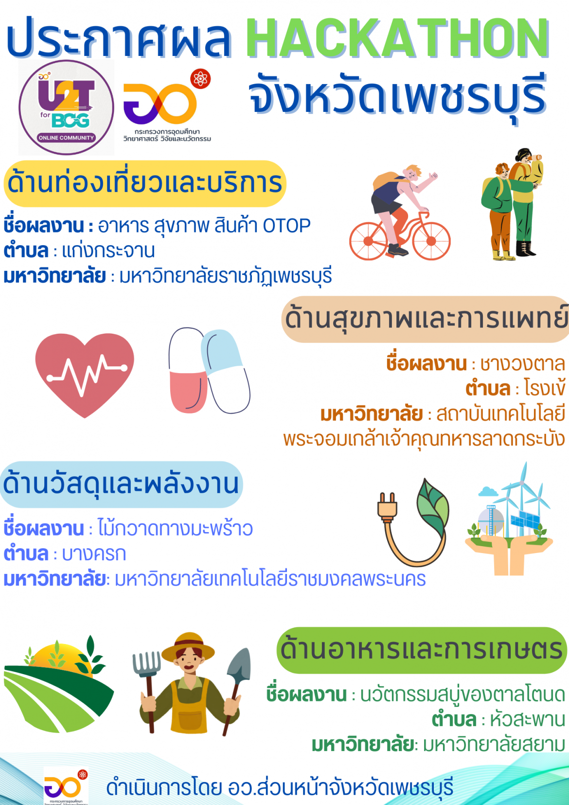 อว.ส่วนหน้าจังหวัดเพชรบุรี ประกาศผลการประกวด Hackathon ในระดับจังหวัด ในวันที่ 27 กรกฎาคม 2565