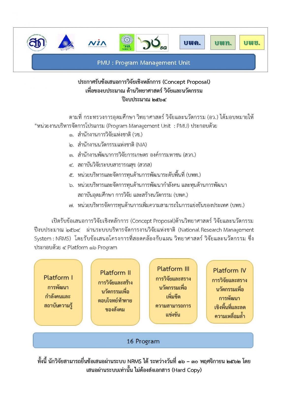 ซึ่งประกอบด้วย 4 Platform 16 Program และนักวิจัยสามารถยื่นข้อเสนอผ่านระบบ NRMS