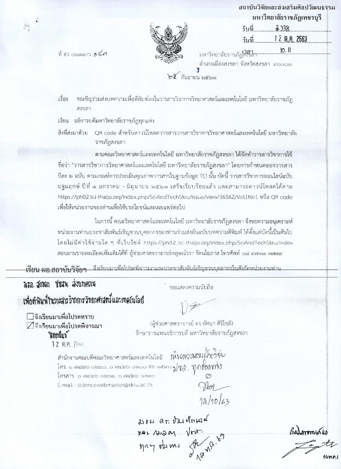 เพื่อของบประมาณ ด้านวิทยาศาสตร์ วิจัยและนวัตกรรม ปีงบประมาณ 2564
