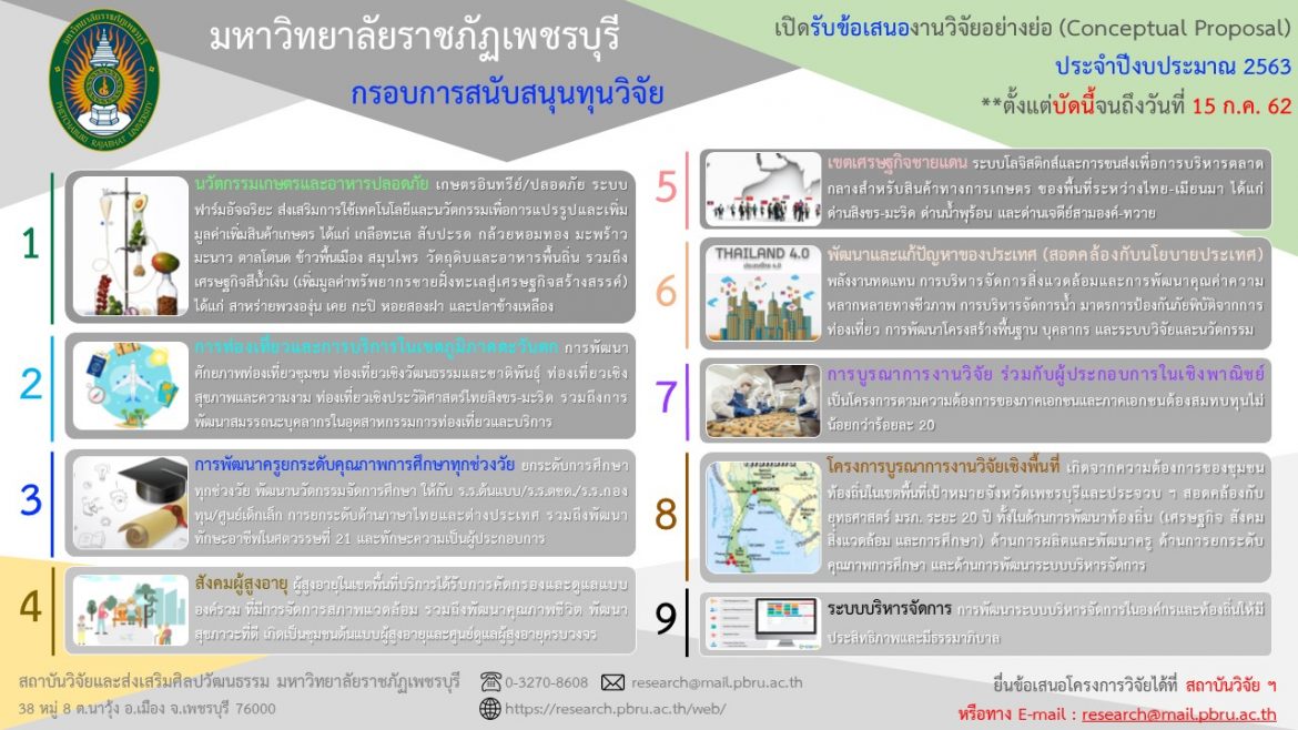 โดยมหาวิทยาลัยราชภัฏเพชรบุรีมีกรอบการสนับสนุนทุนวิจัย ดังนี้