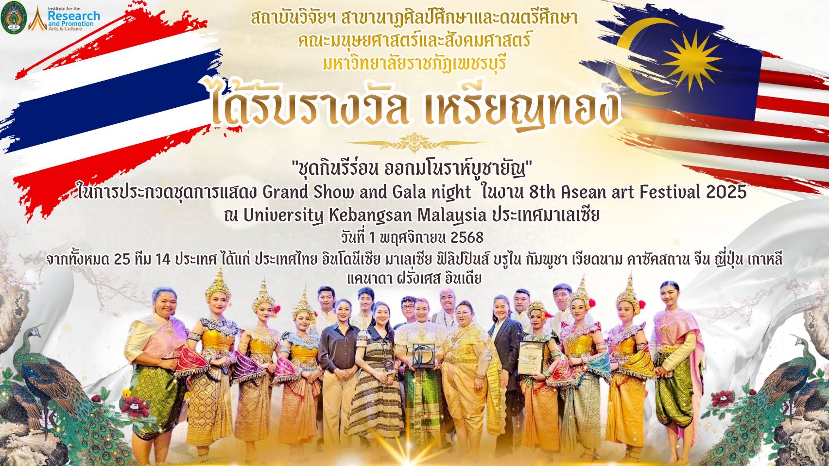 🏆 มรภ.เพชรบุรี คว้า “เหรียญทอง” จากเวที 8th ASEAN Art Festival ณ ประเทศมาเลเซีย