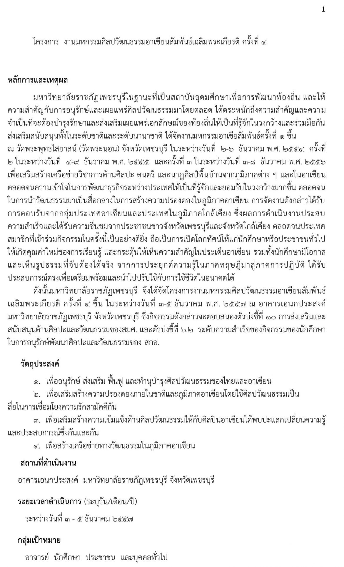 การประชุมวิชาการนำเสนอผลงานวิจัยศิลปวัฒนธรรมระดับชาติราชภัฏเพชรบุรีวิจัย ครั้งที่ 1 “ศิลปวัฒนธรรมไทย ก้าวไกลสู่อาเซียน”