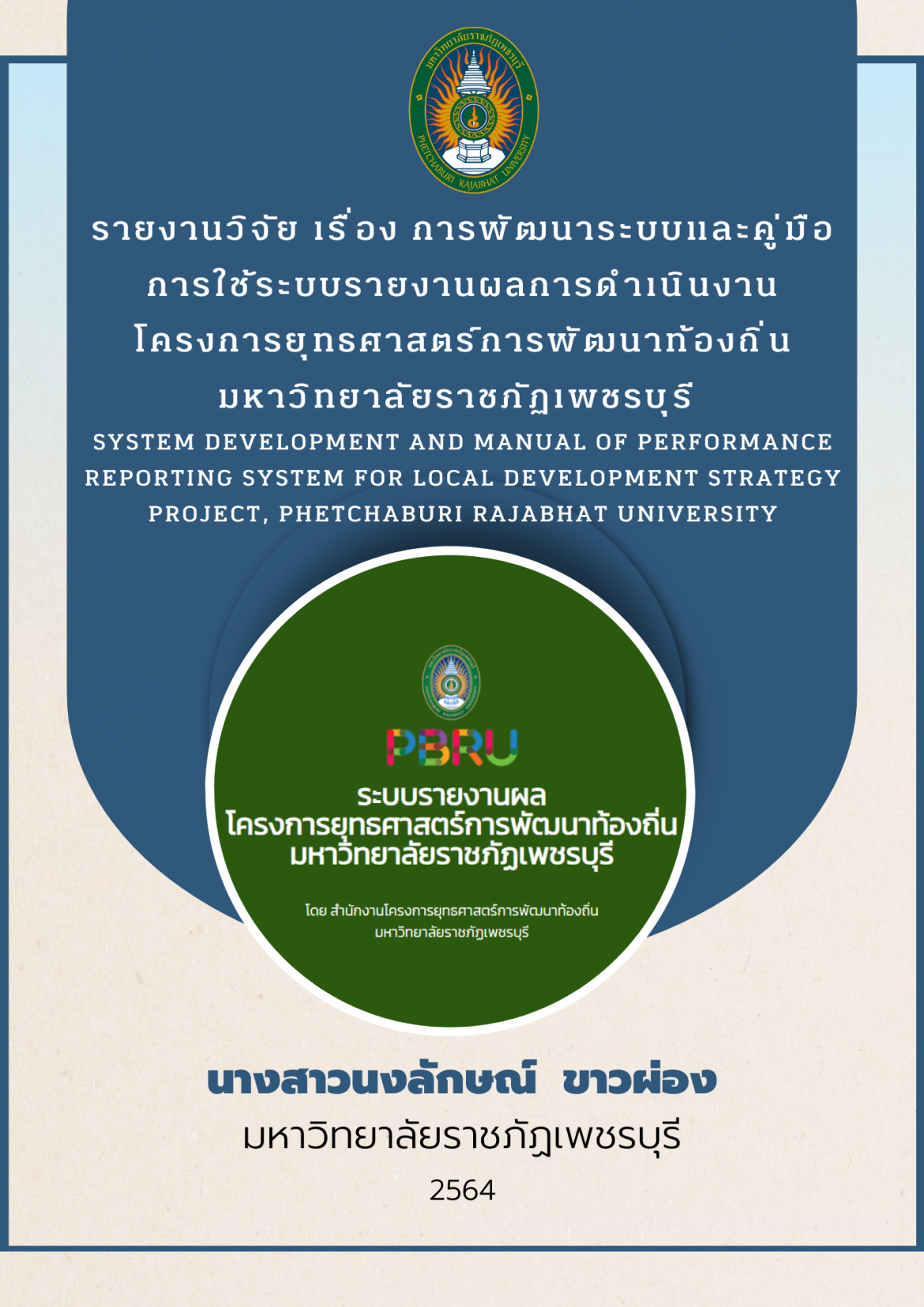 งานวิจัยสู่การใช้ประโยชน์ รายงานวิจัย เรื่อง การพัฒนาระบบและคู่มือการใช้ระบบรายงานผลการดำเนินงานโครงการยุทธศาสตร์การพัฒนาท้องถิ่น มหาวิทยาลัยราชภัฏเพชรบุรี by นงลักษณ์ 2 พฤษภาคม 2023 written by นงลักษณ์ เล่มวิจัย_merged 2 พฤษภาคม 2023 0 comment 0 FacebookTwitterLINEEmail