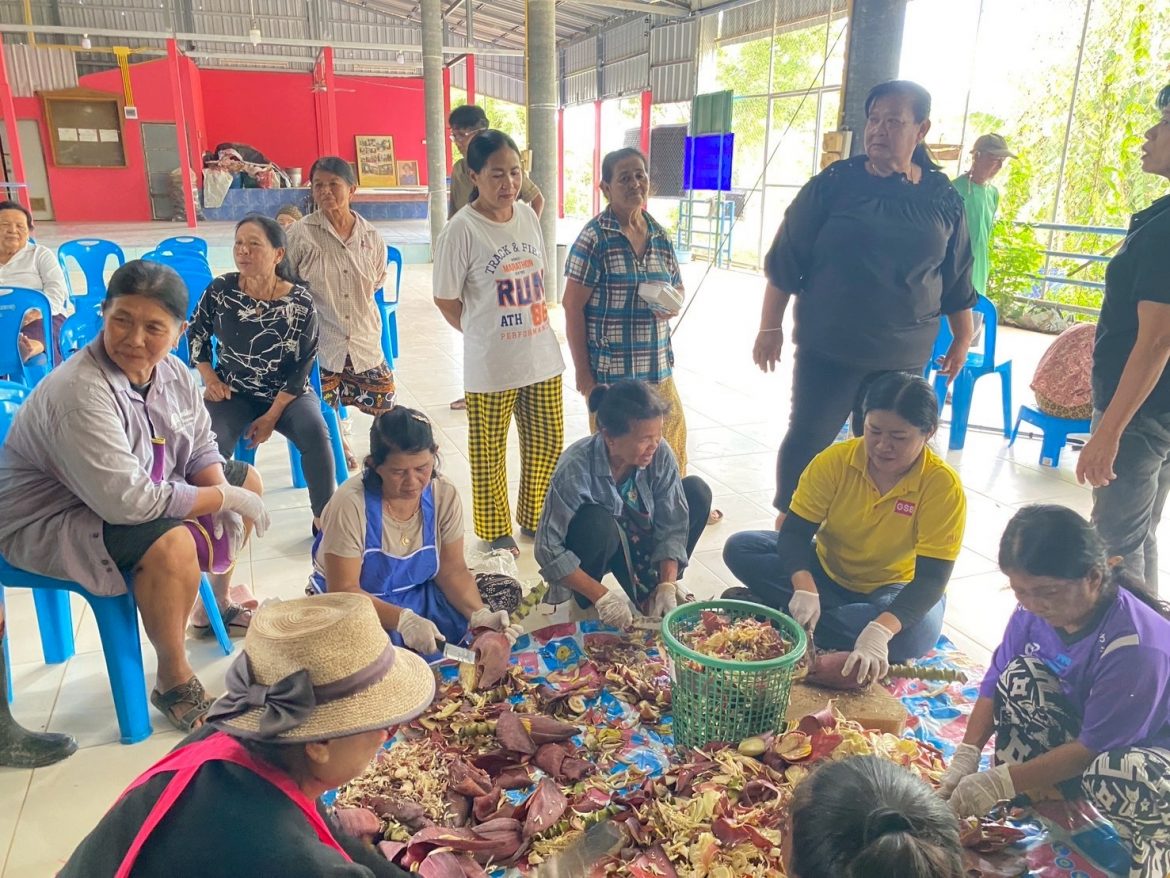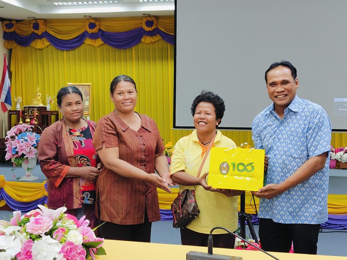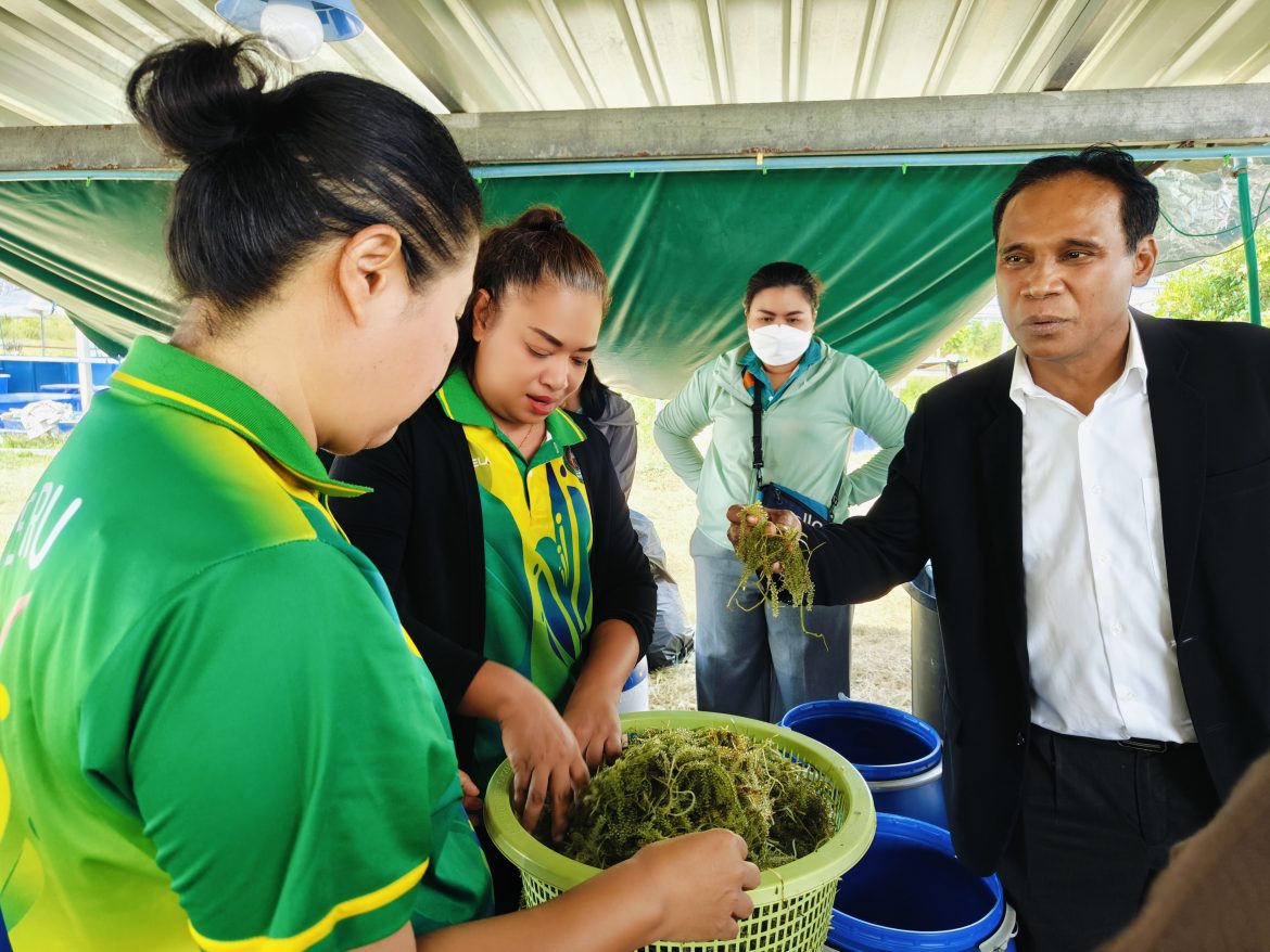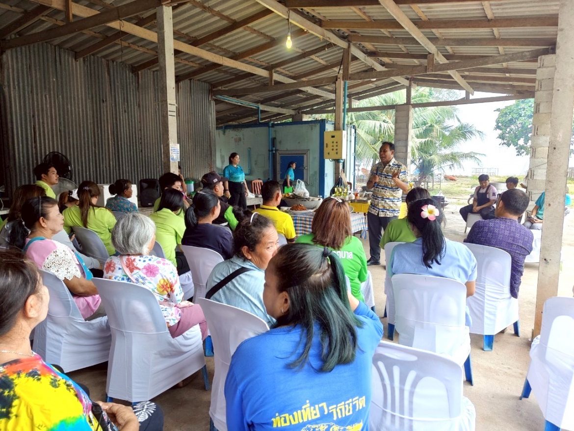 ผู้ช่วยศาสตราจารย์พจนารถ บัวเขียว รองอธิการบดีงานด้านยุทธศาสตร์การพัฒนาท้องถิ่นอย่างยั่งยืน อาจารย์ชลิดา ช้างแก้ว หัวหน้าโครงการและอาจารย์จากสาขาวิชาเพาะเลี้ยงสัตว์น้ำ อาจารย์ ดร.ศิริวรรณ แดงฉ่ำ ประธานสาขาเกษตรศาสตร์ บุคลากรจากคณะเทคโนโลยีการเกษตร บุคลากรฝ่ายบริการวิชาการและพัฒนาท้องถิ่น ได้ลงพื้นที่จัดกิจกรรมอบรมเชิงปฏิบัติการ “การสร้างมูลค่าเพิ่มจากสาหร่ายทะเล” ในโครงการยกระดับและสร้างมูลค่าเพิ่มจากสาหร่ายทะเล สู่สินค้าคุณภาพชุมชนบ้านพะเนิน ตำบลแหลมผักเบี้ย อำเภอบ้านแหลม จังหวัดเพชรบุรี เพื่อสร้างรายได้ให้กับชุมชน