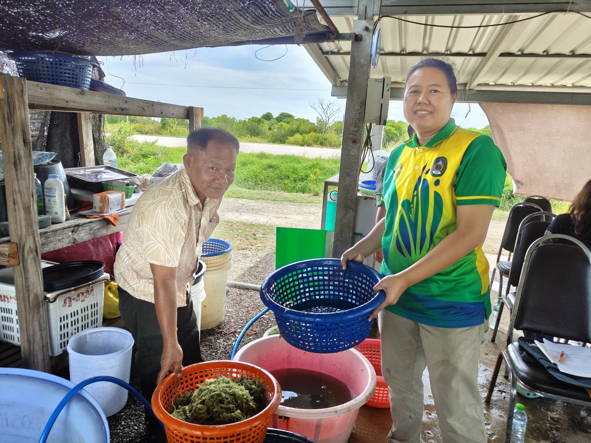 ทั้งนี้ท่านผู้ช่วยศาสตราจารย์พจนารถ บัวเขียวได้สรุปผลการดำเนินกิจกรรมและสอบถามประเด็นปัญหาและความต้องการเพิ่มเติมจากทางกลุ่มวิสาหกิจ เพื่อการสร้างมูลค่าเพิ่มจะเศษสาหร่ายพวงองุ่นต่อไป