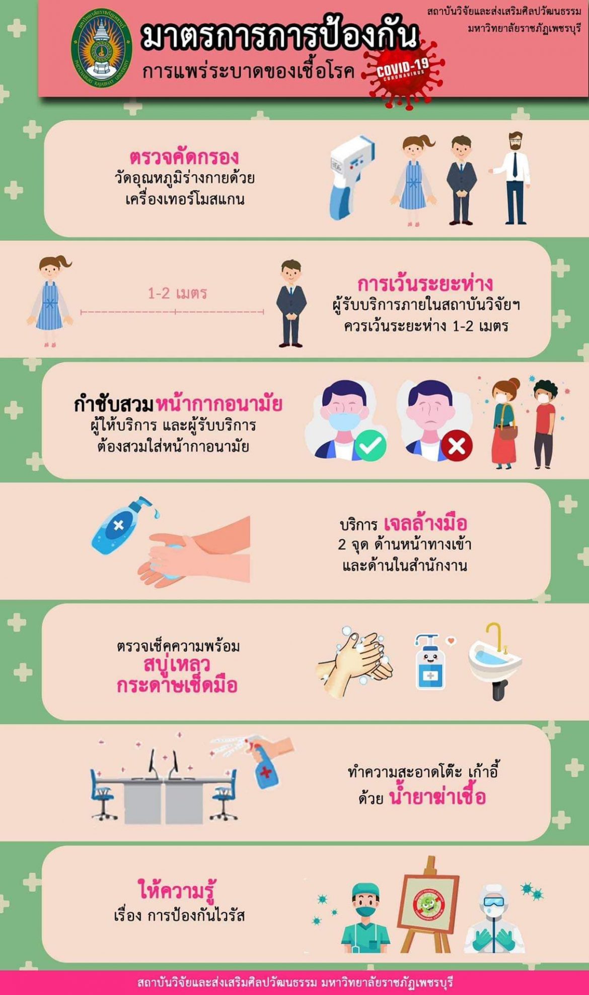 สถาบันวิจัยฯ มาตรการและแนวปฏิบัติในการป้องกันการแพร่ระบาดของโรคติดเชื้อไวรัสโคโรนา 2019 มหาวิทยาลัยราชภัฏเพชรบุรี by วันณพงค์ 19 เมษายน 2021 written by วันณพงค์ 19 เมษายน 2021 0 comment 0 FacebookTwitterLINEEmail