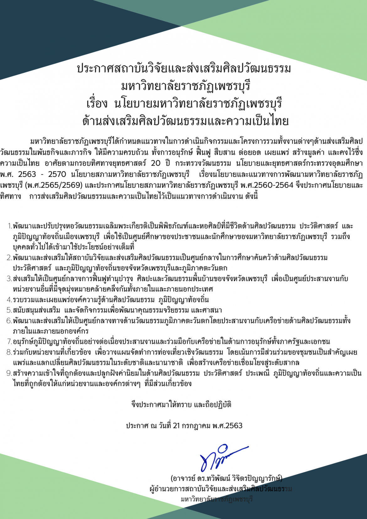 งานส่งเสริมศิลปวัฒนธรรม ประกาศ เรื่อง นโยบายมหาวิทยาลัยราชภัฏเพชรบุรี ด้านส่งเสริมศิลปวัฒนธรรมและความเป็นไทย by นงลักษณ์ 21 กรกฎาคม 2021 written by นงลักษณ์ ประกาศ เรื่อง นโยบายมหาวิทยาลัยราชภัฏเพชรบุรี ด้านส่งเสริมศิลปวัฒนธรรมและความเป็นไทย ประกาศสถาบันวิจัยและส่งเสริมศิลปวัฒนธรรม-มหาวิทยาลัยราชภัฏเพชรบุรี 21 กรกฎาคม 2021 0 comment 0 FacebookTwitterLINEEmail